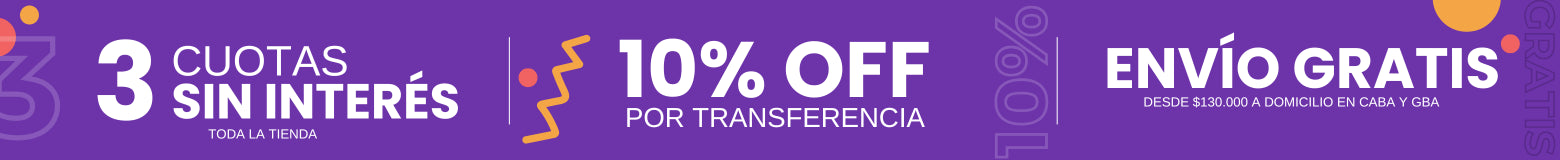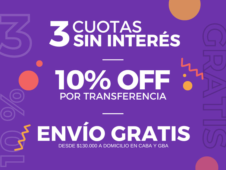 3 cuotas sin interés y 10% off por transferencia
